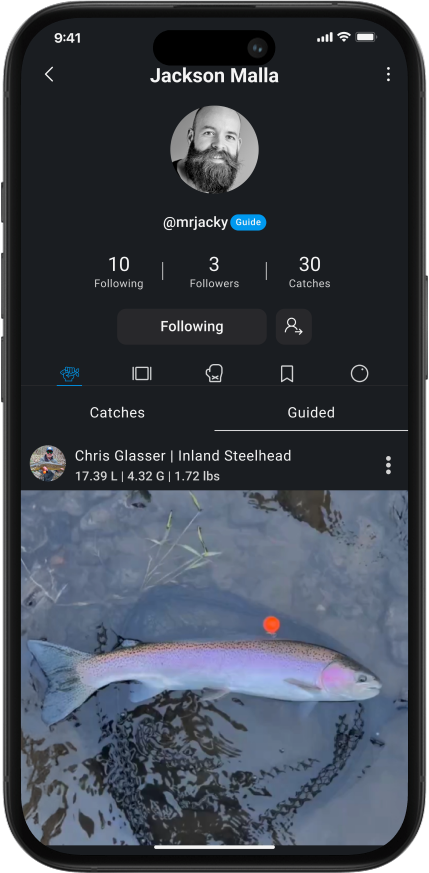 Fishing with a guide? They can have profiles on Fishtechy, and you can tag them in your catch! Guides can also tag you, and they have a special “Guided” feed in their profile to showcase their clients’ catches. It’s a great way to highlight expert-led fishing trips and grow your network!